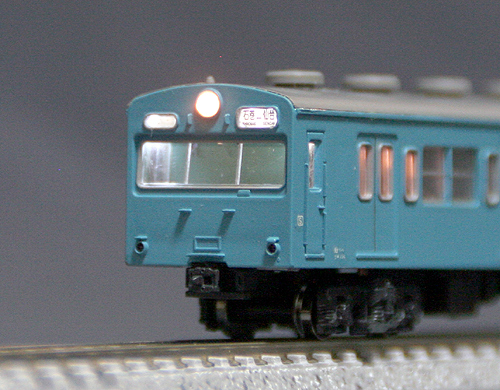 初期車の一部の車両はヘッド/テールライト点灯準備を施しています。 シールドビームタイプの点灯化は既に常磐線のページで紹介しておりますが、ここでは原型の1灯タイプです。 具体的な構造は画像の通りですがヘッドライト本体は銀河のN-013を使用し、運行幕・行先幕はクハ103ATC車のものを画像のように切断してゴム系接着剤で位置決めのための仮止めをしたあと、思い切って瞬間接着剤で固定します。固着の際、曲がらないように注意が必要です。 また、ヘッドライトを点灯式にする場合はライトケースリム内を光学繊維で導光させる必要があります。 その他床下・ヘッドライトユニット関係部品の改造は常磐快速線のページで紹介したクモハ103-135の場合と同一です。 クハの場合、床下・座席等はATCクハのパーツをそのまま流用可能な構造となっています。 |