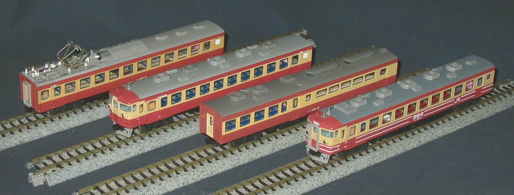 <クハ455-600番台> サロ455の車体に運転台ブロックを接合する作業がメインです。 側扉は前位と後位で幅が異なります。前位は広幅なので他の普通車の車体から切り取って流用します。 前位側扉のステップですが、切継ぎ位置の関係でどうしても犠牲になるので切継ぎにより短くなった分は別の材料を接合して元の寸法に戻します。 この車両もトイレ側の妻面には楕円銘板 (日本国有鉄道銘板・製造銘板・改造銘板の3枚) を追加します。 |