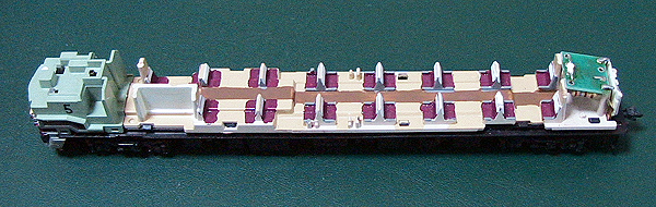 座席部分の床 : 特急色のクリーム4号 通 路 : ウッドブラウン(Mr.カラーNo.43) 座 席 : 自家調合のエンジ色 座席上部 : クリーム4号 |